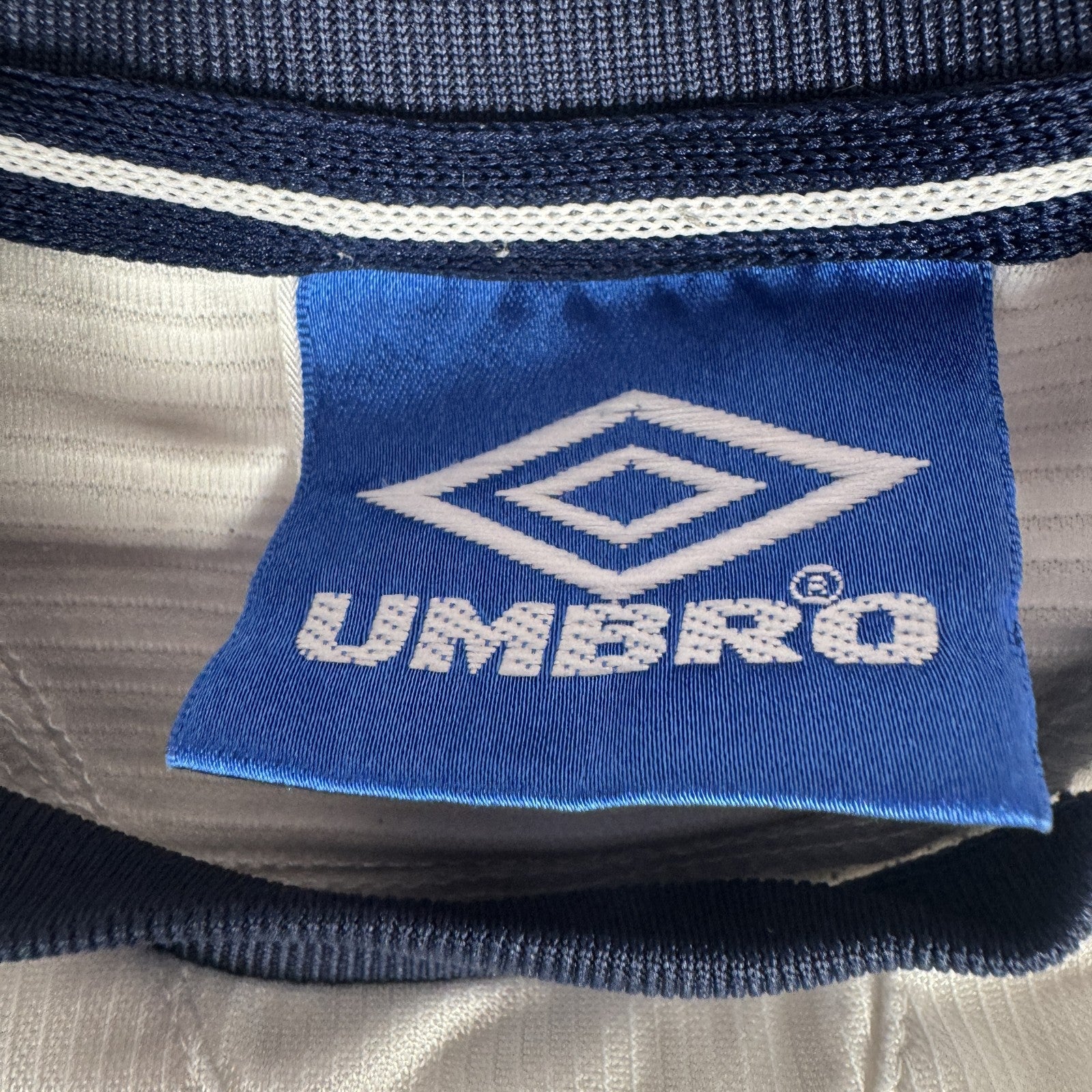 From the 1999/2000 campaign, this original white Umbro jersey is a standout piece for fans or collectors of classic football kits.